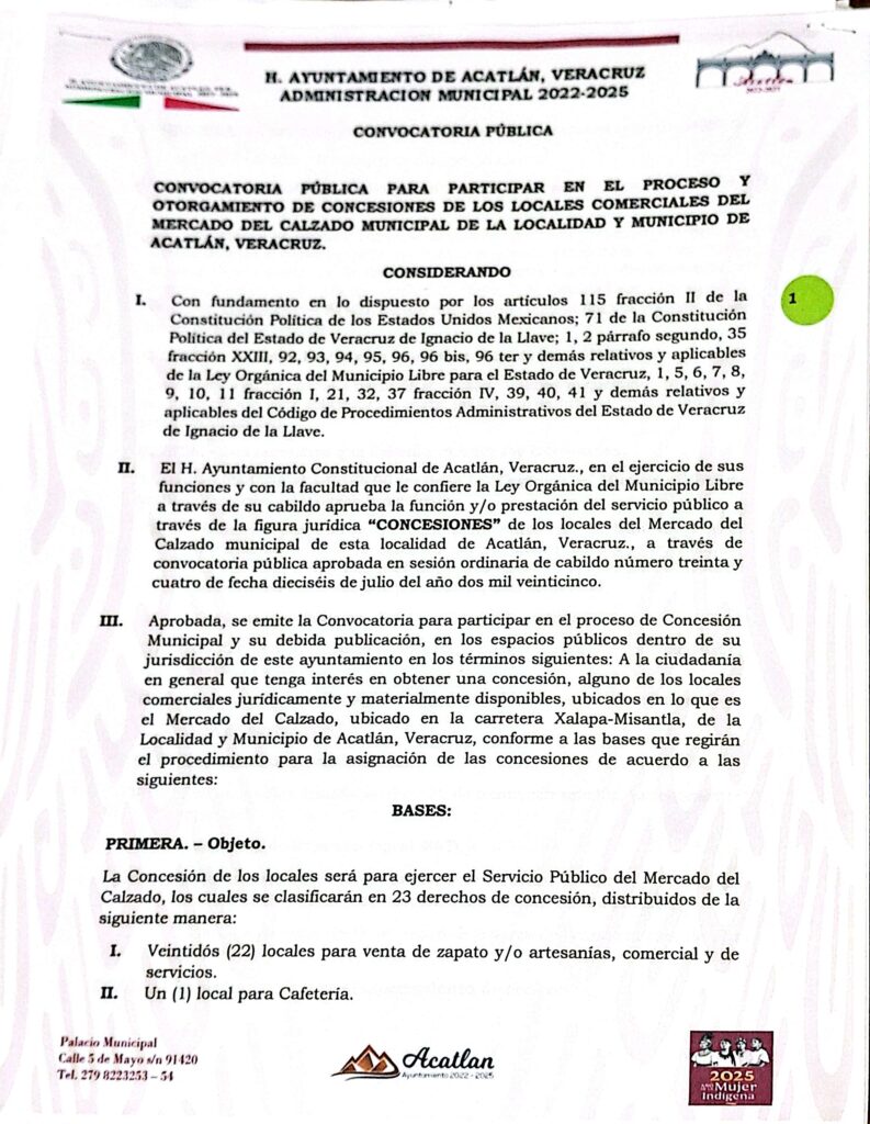 21 Jul CONVOCATORIA PÚBLICA MERCADO DEL CALZADO MUNICIPAL DE ACATLÁN, VERACRUZ. Posted at 13:47h in Noticias by H. Ayuntamiento de Acatlan H. Ayuntamiento de Acatlan